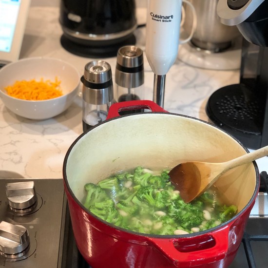 5-Ingredient Broccoli, Cannellini Bean & Cheddar Soup