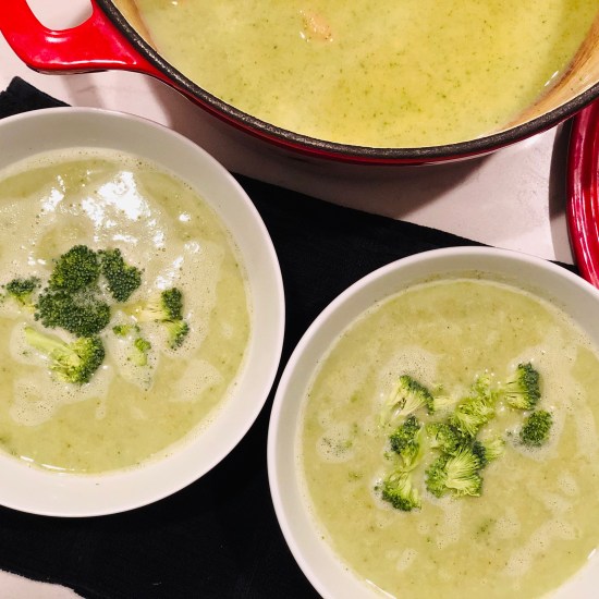 - Add cheese in and using an immersion blender, blend until smooth (if you prefer a chunkier soup, blend until desired thickness). Alternatively, transfer half the mixture to a blender with half the cheese and puree to preferred thickness. Transfer to a bowl. Repeat with the remaining broccoli mixture and cheese. Serve warm. Enjoy!