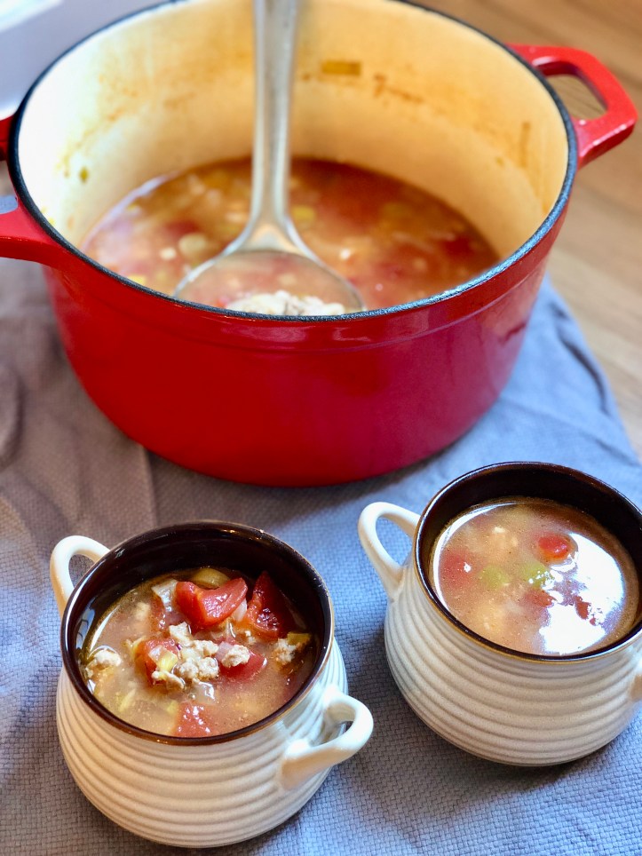 This week, I made a Whole30 friendly Portuguese soup. It’s a tomato based soup full of two different kinds of meat and veggies. While it sounds heavy, it’s actually quite light! If you’re not doing Whole30, dip a crusty bread into this. If you are, just make a bigger bowl of this soup and you’ll be completely satisfied!