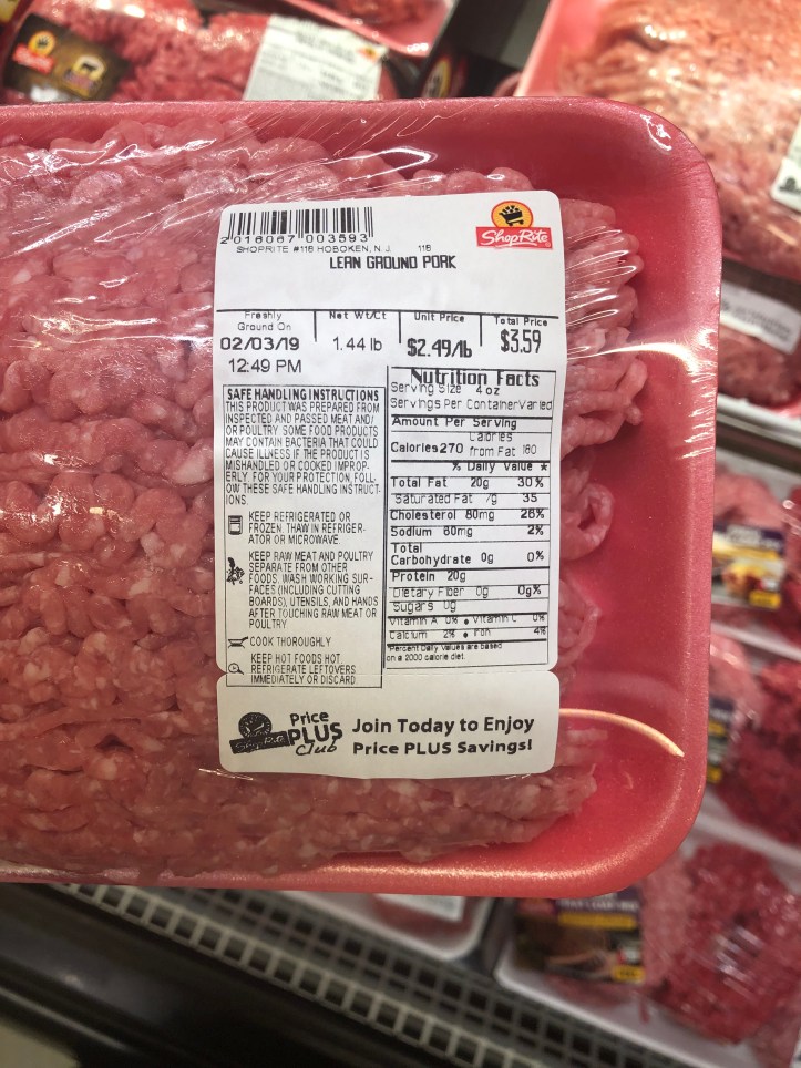I found pork is generally a good, cheap option when you’re on a budget. Since ground pork is on sale this week at our local Shoprite for $3.59 for nearly 1.5 pounds, I decided this would be the meal I would make with it.