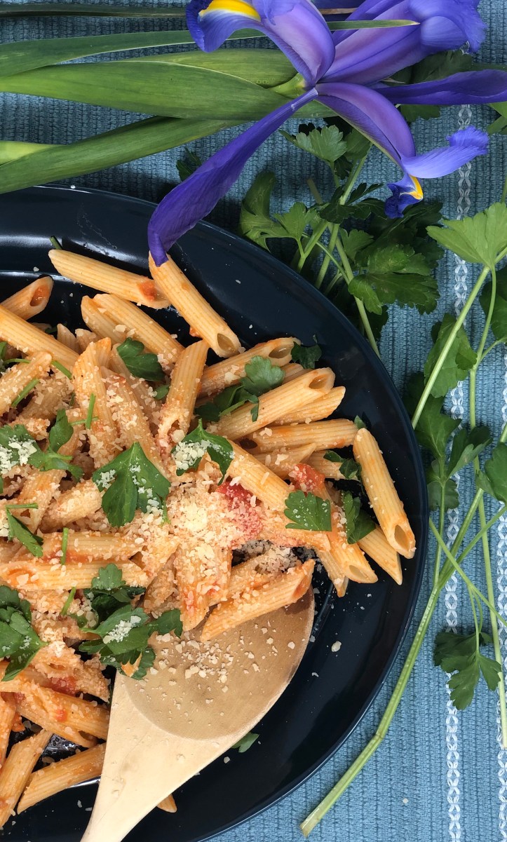 I don’t eat pasta very often, but when I do, I like it smothered in vodka sauce. It’s so creamy and the best comfort food for me. You can of course buy some good vodka sauces out there, this is a super easy one to make and having it fresh is like nothing else!