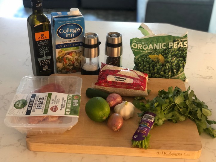 - Add the chicken stock and bring to a simmer. Add the quinoa and the chicken.