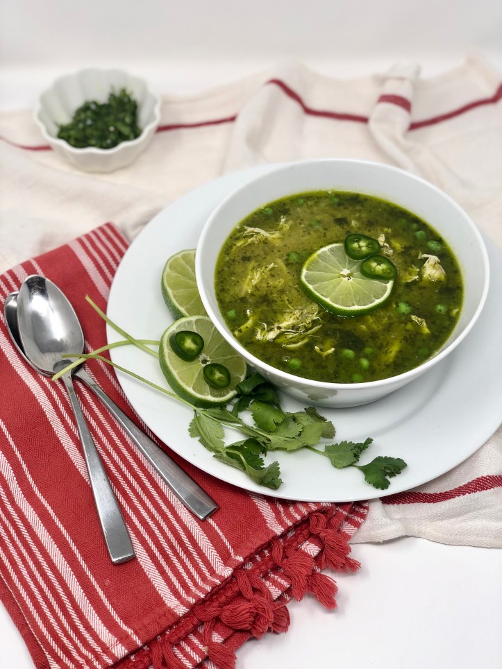 So now that I’ve learned what it is and how to make it, I want to scream it from the roof tops because it’s so so good. Think of the best chicken soup you’ve ever had and then make this. It’s traditionally a Peruvian chicken and rice soup with a TON of cilantro. It’s bursting with flavor and yes, it’s really this green.