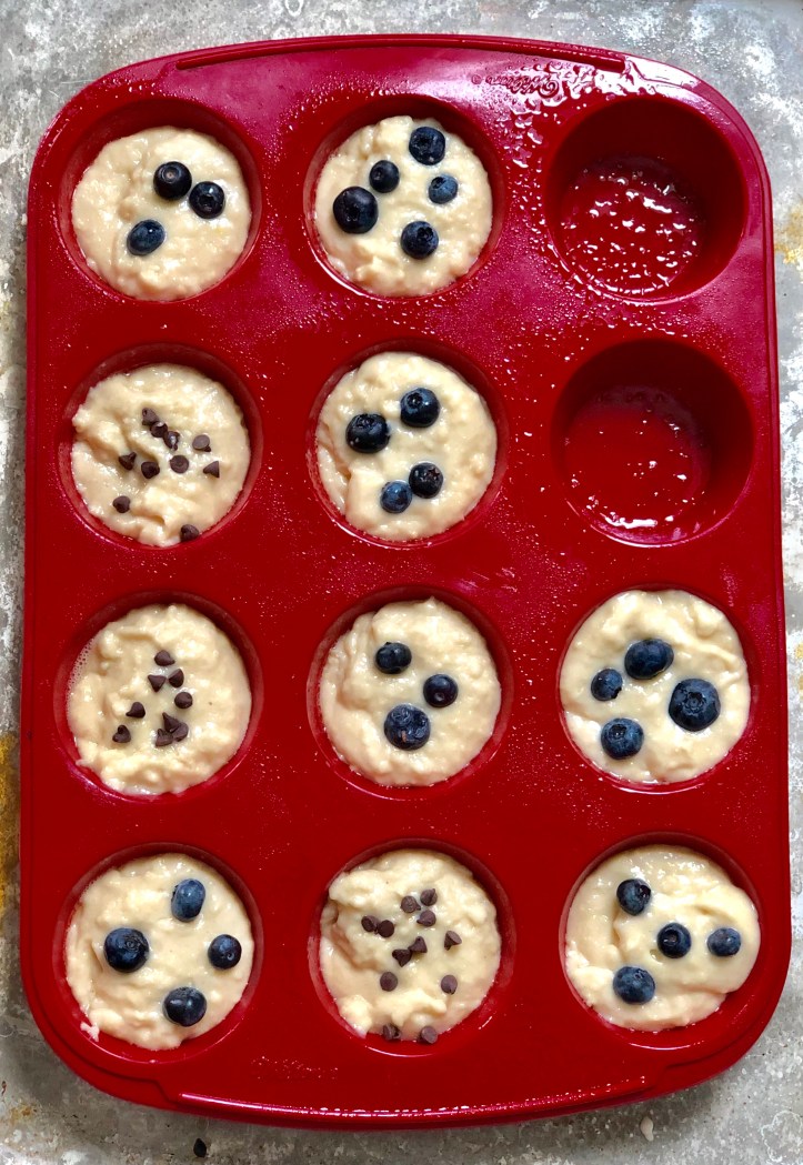 Add your favorite muffin flavors/additions (fruit, nuts, chocolate chips, oats, etc…).