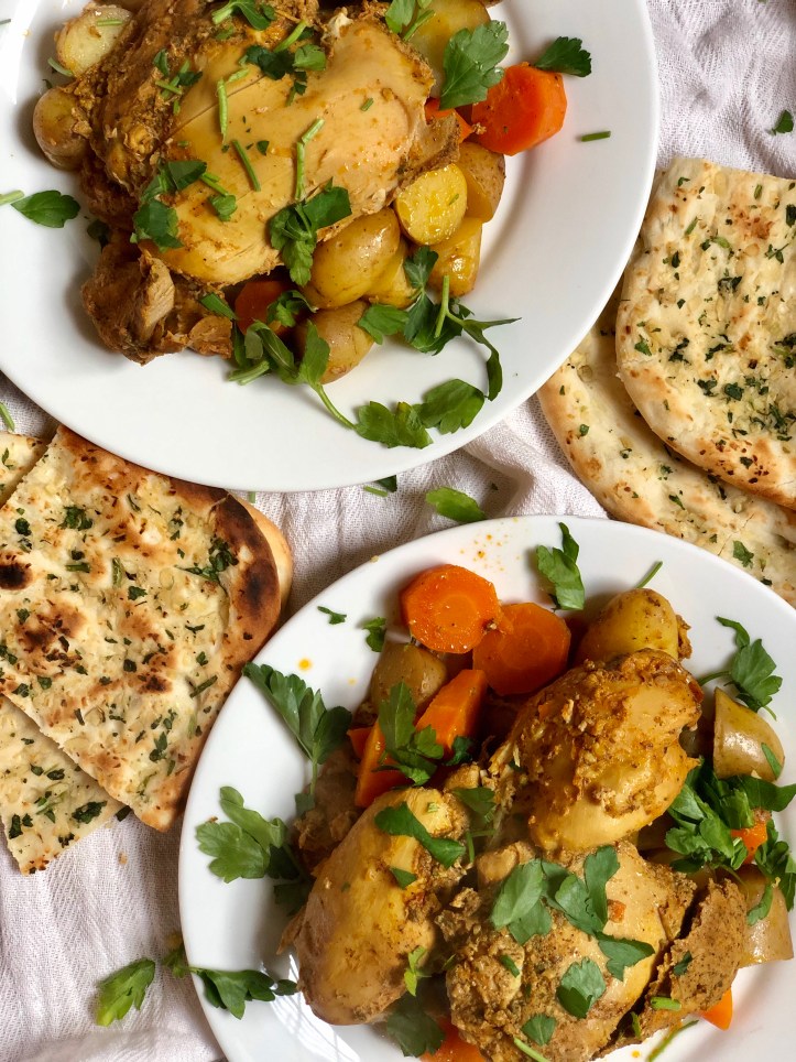 I ended up serving dinner tonight with some of Trader Joe’s garlic naan too, but you can easily keep it paleo by not including the naan bread! Although, garlic naan is pretty good with it. 🙂