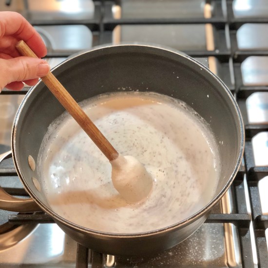 - In a medium saucepan, add milk and cook over medium heat, stirring constantly, until warmed through, about 5 minutes.