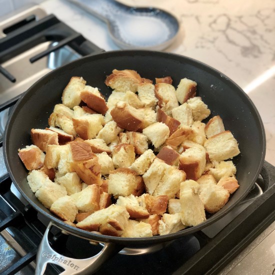 - Heat oil in a large skillet over medium-high until shimmering. Reduce heat to medium-low and, working in batches if needed, cook bread until golden brown and crisp, about 5 minutes per side.