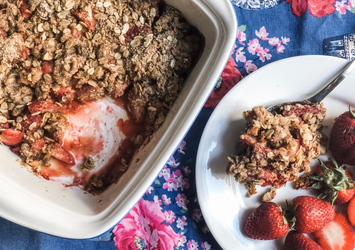 I love to make my strawberry muffins and my strawberry salad with the fresh berries. But today, I decided to make a crumble. It’s been a long week and I need something to help me get through it!