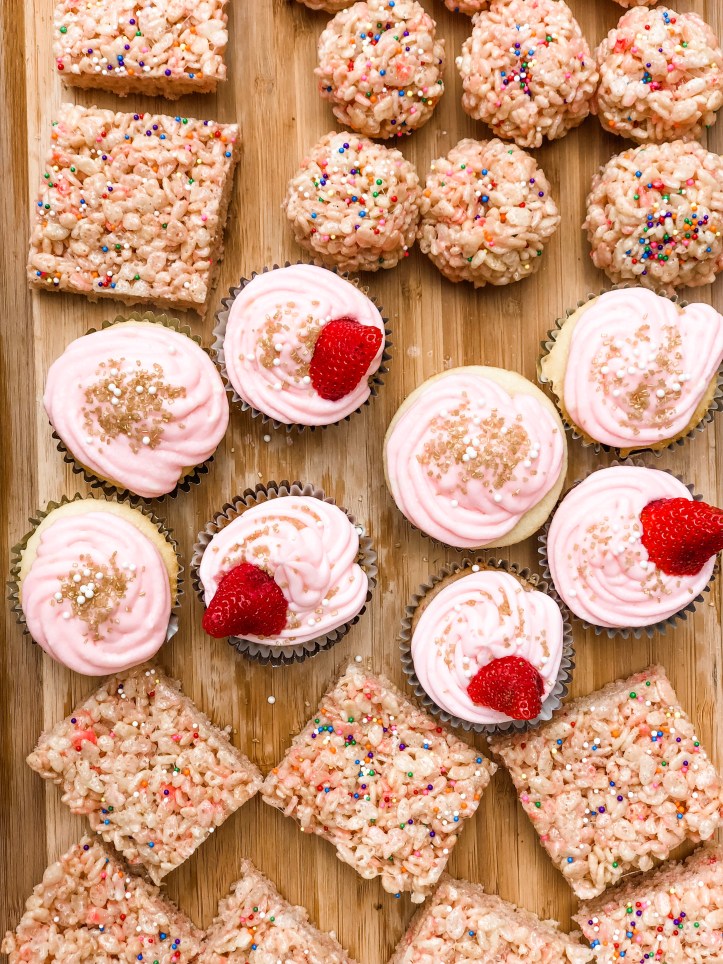 This past weekend was Matilda’s 1st birthday party. We celebrated by having a small party with friends and family in the park. We enjoyed lots of pizza, Strawberry Cupcakes and these Rice Krispie treats. They were delicious! The kids AND adults ate these up before the cupcakes (don’t worry, those were gobbled up too) and they are super simple to make.