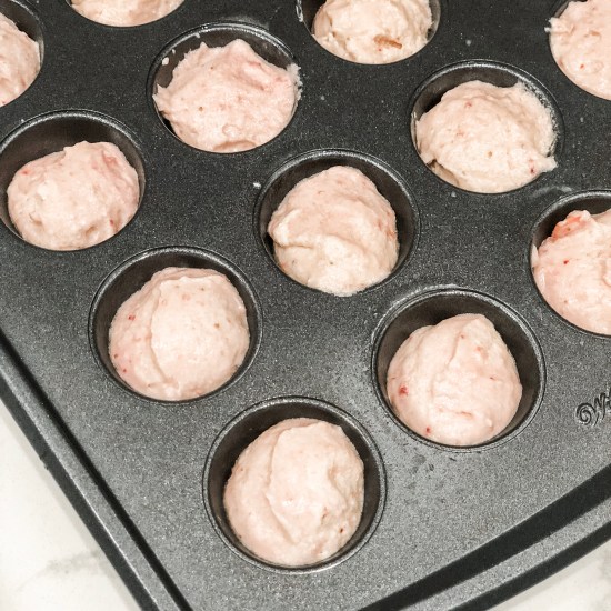 - Preheat the oven to 350 degrees. Grease mini cupcake tin and set aside.