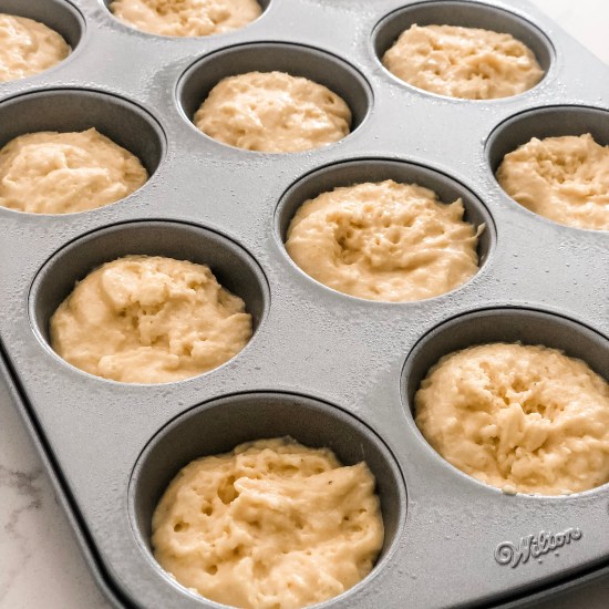 - Spoon the batter evenly into the prepared muffin pan, filling each cup about 3/4 full. Bake for 17 to 20 minutes, or until the tops are set and golden. Cool the muffins for a few minutes in the pan, then serve warm. Enjoy!