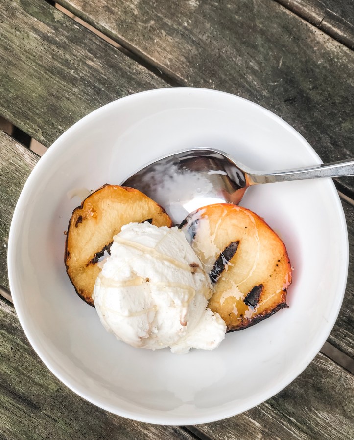 Once of my favorite summer desserts is a simple grilled peach. Sun-kissed summer peaches are so sweet, they really don’t need anything but the heat of the grill to bring out the sweetest juices. I only top mine with ice cream because, well, who doesn’t love ice cream in the summer too?!
