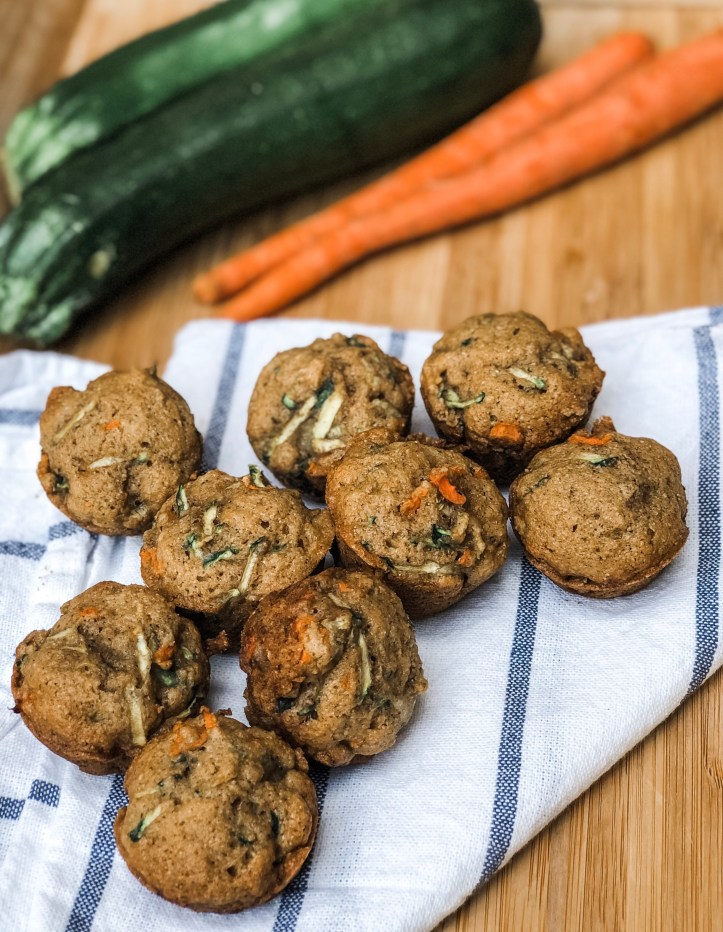 - Add the zucchini and carrots and stir gently until just distributed.Fill each cup in the mini muffin pan approximately 3/4 full. Bake for 15-20 minutes or until a toothpick inserted in the center of a muffin comes out clean. Enjoy!