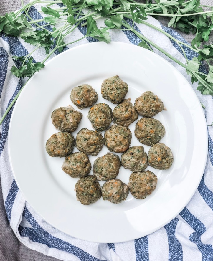 So these meatballs are a great option. They are JAM-PACKED with veggies, they’re gluten free and they’re beyond delicious. The recipe makes 30 meatballs, and they freeze great. It’s the perfect thing to make over the weekend, freeze and enjoy when you need a fast dinner during the week.