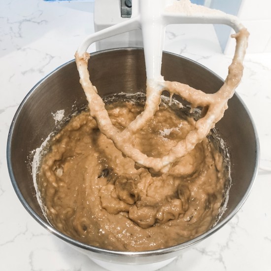 A little searching and I found the answer – tahini! Sounds gross, right!? It’s soooooo not gross. It’s actually sooooo good! The tahini doesn’t taste seedy. Its role is to add moisture to a traditionally dry bread. And it does just that!
