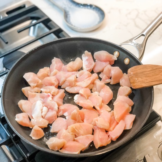 - 1 lb boneless skinless chicken breasts, cut into 1 inch pieces
