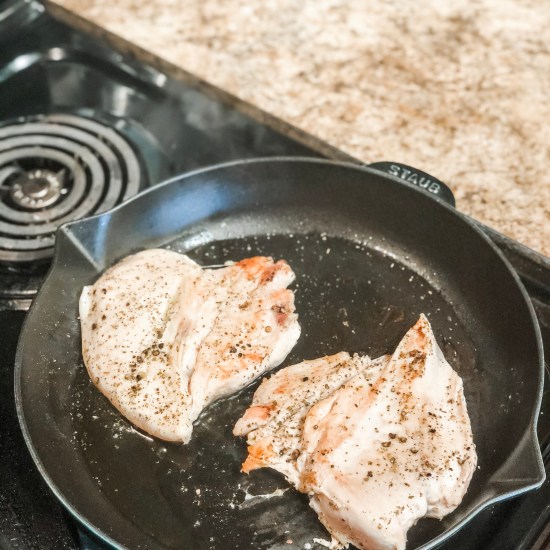 But tonight, I wanted something a little simpler. Cut some chicken up and let the pan do the rest (and if you wanted, you could bake this at 350 too – it would take around 45 minutes or so, depending on the thickness)). I tend to like this in the pan though because it get a nice little crisp on the outside if you cook in in a cast iron skillet.
