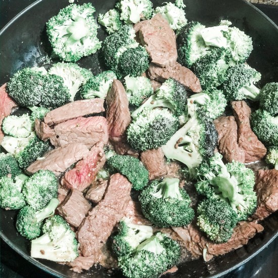 Every now and again, I’m so tired at the end of the day to even call for takeout. So, I make the easiest thing I can think of, which is a stir fry. All you do is take any protein and any veg (in this case, beef and broccoli) and saute them together for a few minutes. Then, it’s ready to eat! It’s beyond simple and might even take longer to call for takeout!