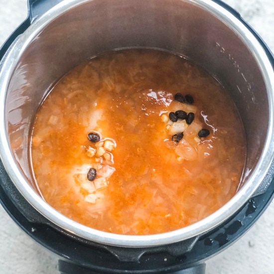 - Heat oil in Instant Pot on saute mode. Add onion and garlic and cook until softened, about 3-4 minutes.