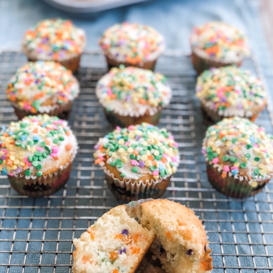 I wanted to celebrate today’s special day with an ode to my favorite celebratory cupcake as a child – Funfetti! They were super colorful and easy to make from a box.