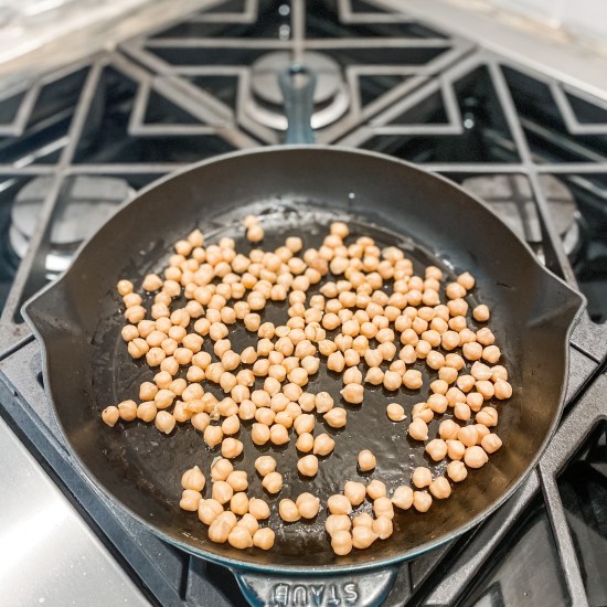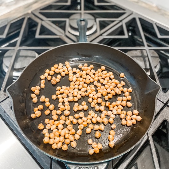 - Heat oil in a large nonstick skillet over medium-high heat. Add chickpeas to pan; cook 17 minutes or until golden brown and crispy all over, stirring occasionally.