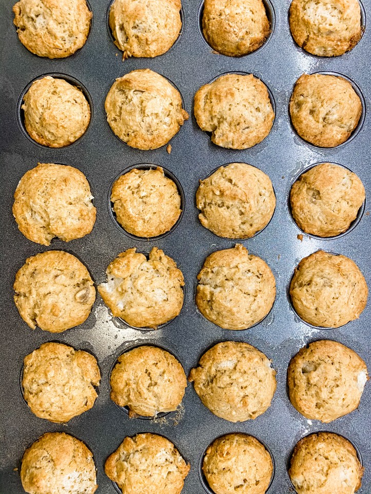 - Preheat oven to 350 degrees. Grease a 24-muffin tin and set aside.