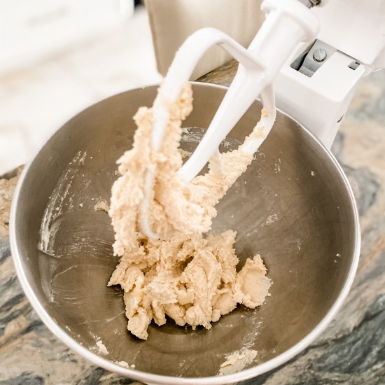 - Using a 1 1/2 tablespoon cookie scoop, scoop the dough into equal portions and spread the balls out two inches apart on the prepared cookie sheets (optional: for thicker puffier cookies, chill the dough for 30-60 minutes, then bake for 15+ minutes).