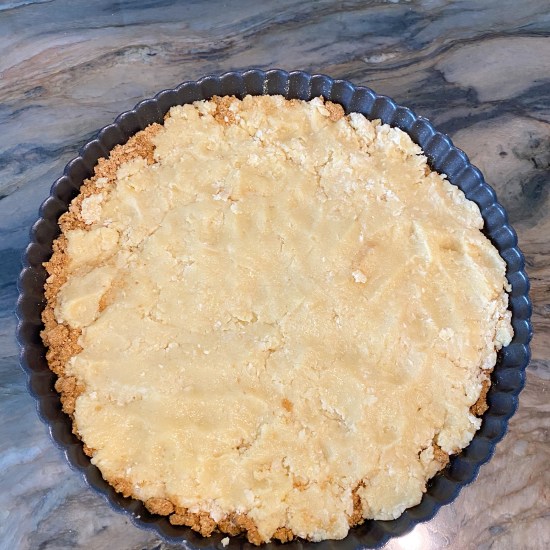 - Using the 1 tablespoon of butter, grease an 11-inch round tin all around bottom and sides. Sprinkle graham cracker crumbs over and shake pan around until bottom is covered.