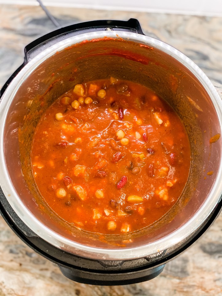 So, what did we make this Sunday? CHILI! It’s cool in Florida which means the rest of the country is even colder. This is the perfect meal to warm anyone up. It’s made from mostly pantry staples, cooks right in the Instant Pot (easy!) and it’s insanely good. It’s also healthy, which is an added bonus. You can put the chili on top of rice, dip some bread into it or even even it with some yummy tortilla chips. YUM!