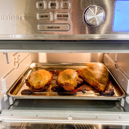 I’ll tell you, I don’t regret it for one second! I’ve found it to be one of the most versatile kitchen tools. You can make everything from the most basic toast, to the juiciest of chicken (that beautiful picture below) to the crunchiest french fries. I seriously love this thing and I can’t wait to use it every darn day! I know, I know, I’m late to the party but it really is that good!