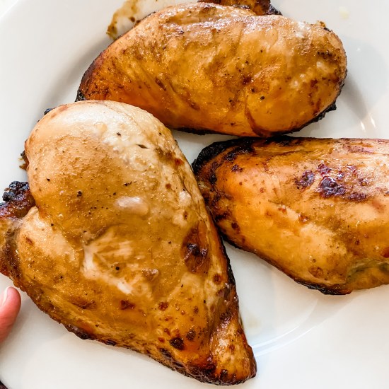 - After time is complete, remove chicken and place on a plate or cutting board to rest for 5 minutes before slicing. Enjoy!