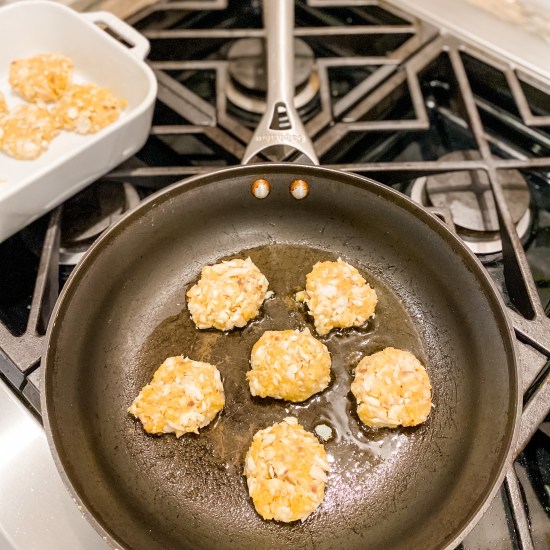- Portion mixture into patties, about 2 tablespoons each.