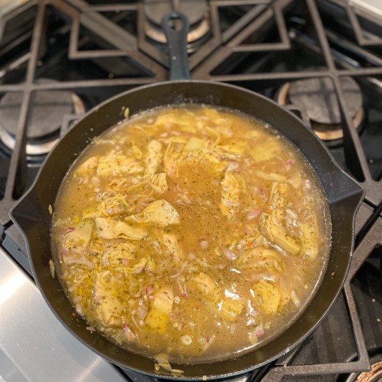 One Skillet Creamy Artichoke Chicken Marsala & Orzo