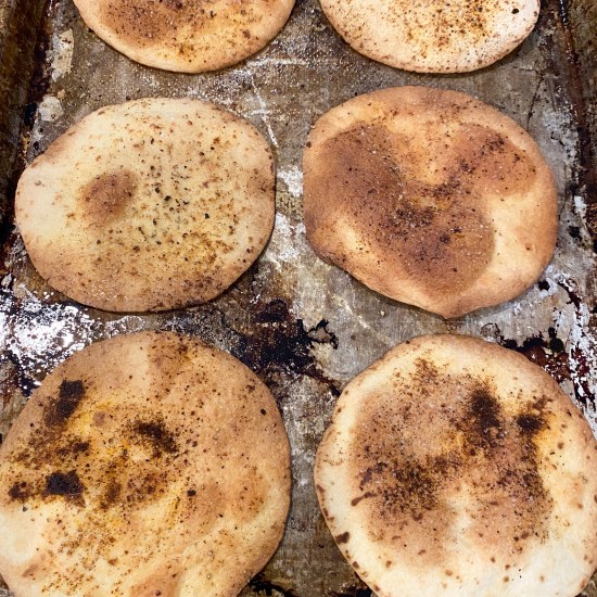 - Preheat oven to 400 degrees. Arrange tortillas in a single layer on a lightly greased rimmed baking sheet, overlapping slightly. Brush tortillas with oil, and sprinkle with 1/2 teaspoon each of the salt and chili powder. Bake in preheated oven until lightly golden and toasted, about 15 minutes.