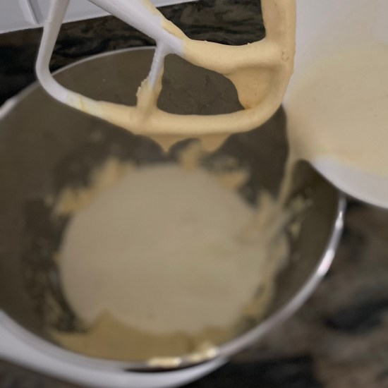 7. When the egg is whipped, add in flour mixture a little bit at a time until just mixed.img_4643_jpg