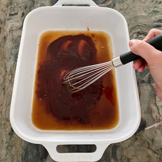 - In a small bowl, mix together the barbecue sauce, pineapple juice, soy sauce, garlic and ginger. Marinate the chicken in this mixture for at least 30 minutes or overnight.