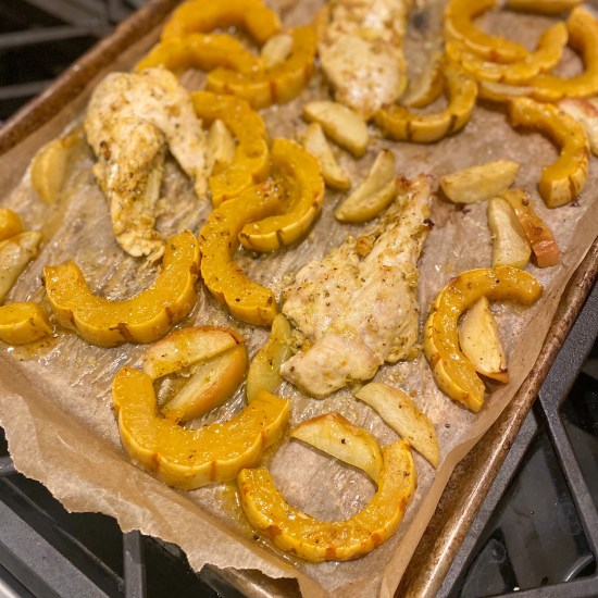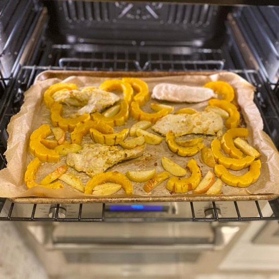 1. Hello. This is so delicious. I’m finding the squash is not soft after 20 minutes. Should I maybe put the squash in for ten minutes before the chicken and apples?