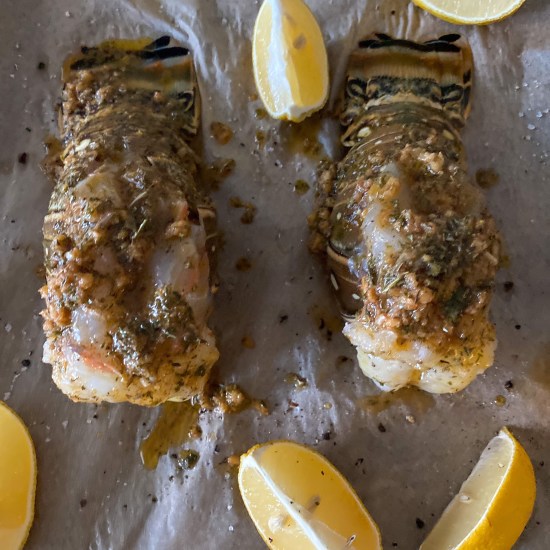 Here’s how I did it: take your tails and cut them – cut the back of the shells using kitchen scissors and pull the meat up (don’t be shy with this – just use your fingers to release the meat from the shell and pull upwards). You don’t have to pull the meat up, but this is a really easy way to make it look extra special before you eat it! Then, season with salt, pepper and pour on the butter-herb sauce. Broil it for 8-10 minutes and enjoy! So easy, right?