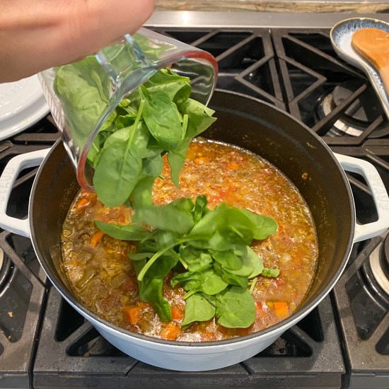 This carrot lentil soup was one of my go-to’s when I first stopped eating meat. It was filling in a way different from pasta and rice carbs. And it was so so good. It’s been so long since I’ve made it but I just recently had a craving for it. So, it’s your lucky day! I’m sharing how I make a really yummy version of this soup below and I know you’ll love it, too. The original recipe called for more liquid and red pepper flakes, but I like a thicker, not as spicy soup. I’ve linked the original below if you want it thinner and spicier!
