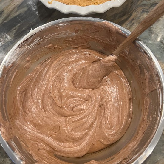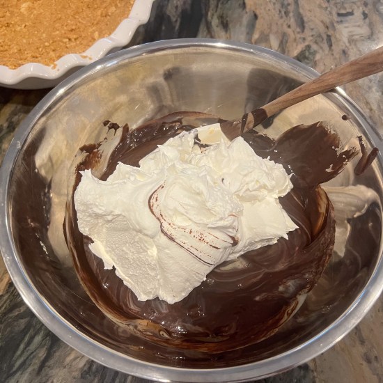 Spread chocolate mixture in prepared pie crust. Chill in fridge to set, at least 2 hours.