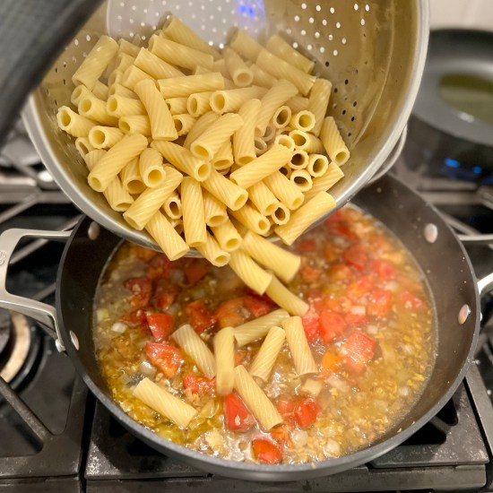 - 1 (16 ounce) package rigatoni or pasta of choice