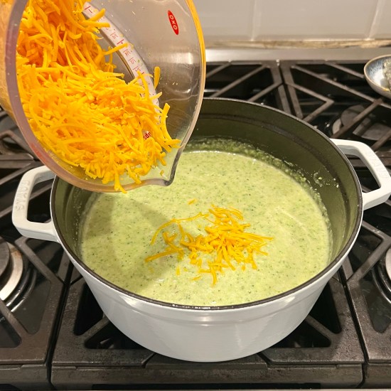 My cold-weather cooking continues with another soup – this time, a deliciously creamy broccoli cheddar soup! I love to make a warm soup this time of year. Even though it’s not always cold in Florida come November, we have our cloudy, rainy and slightly cooler days. That’s when I love to make one of these Fall soups.