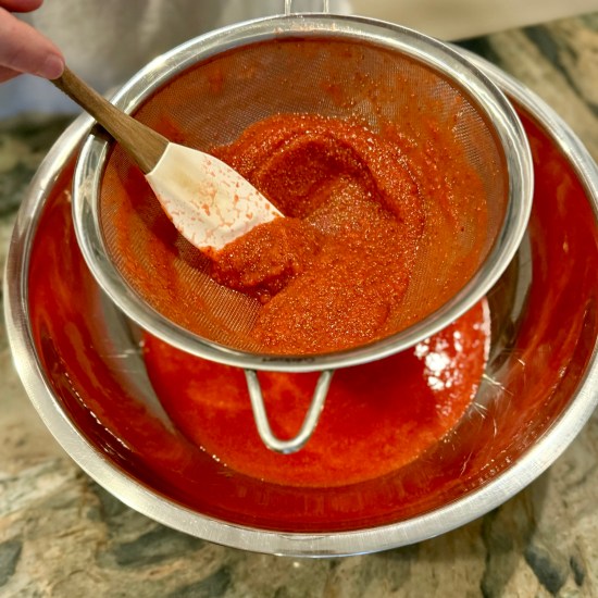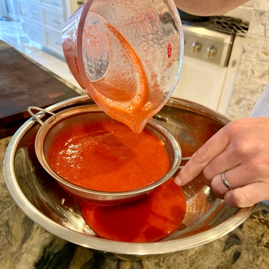 - Pour through a sieve or cheese cloth until the juice has all come through and you are only left with pulp.