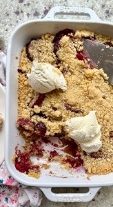 Today, I wanted to make something a little bit easier though – a dump and bake kinda cake. So crumbles are perfect for this. Just slice your fruit and sprinkle a buttery crumble on top and you have yourself the perfect little pie. I served mine with some vanilla bean ice cream on top and it was the best dessert! I know you’ll love making this one, too!