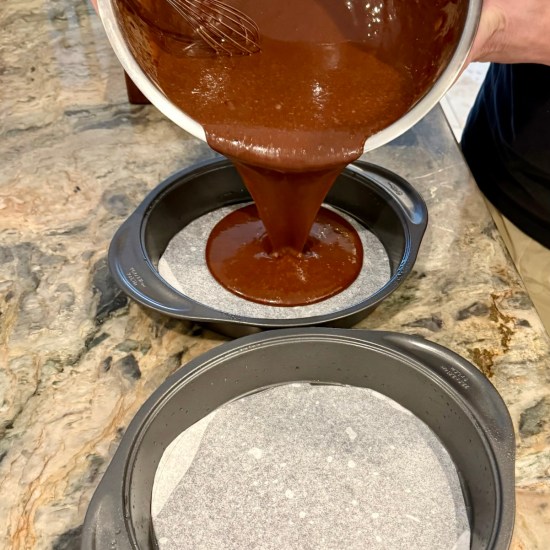 - Preheat oven to 350°F. Grease two 9-inch cake pans, line with parchment paper rounds, then grease the parchment paper.