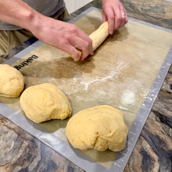 - To make a 4-braid straight challah, separate dough into 4 equal balls. Roll each ball out into a log shape and pinch four rolled dough ropes together at the top. Number them 1-2-3-4. Then, repeat a sequence: move rope 2 over to position 4, move rope 1 over to position 2, move rope 3 over to position 1, and move rope 4 over to position Continue this “2-over-4, 1-over-2, 3-over-1, 4-over-3” pattern until you reach the end, then tuck the ends underneath.