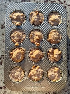 5. Spoon the batter evenly into the muffin cups, filling them about 2/3 of the way. Top with the remaining crumble.