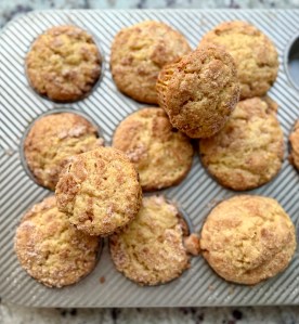 The muffins themselves are super light and fluffy and have a slight vanilla taste to them. Top with the crumble, they become festive and sweet with a dash of decadence. Truly a great muffin, in my opinion!