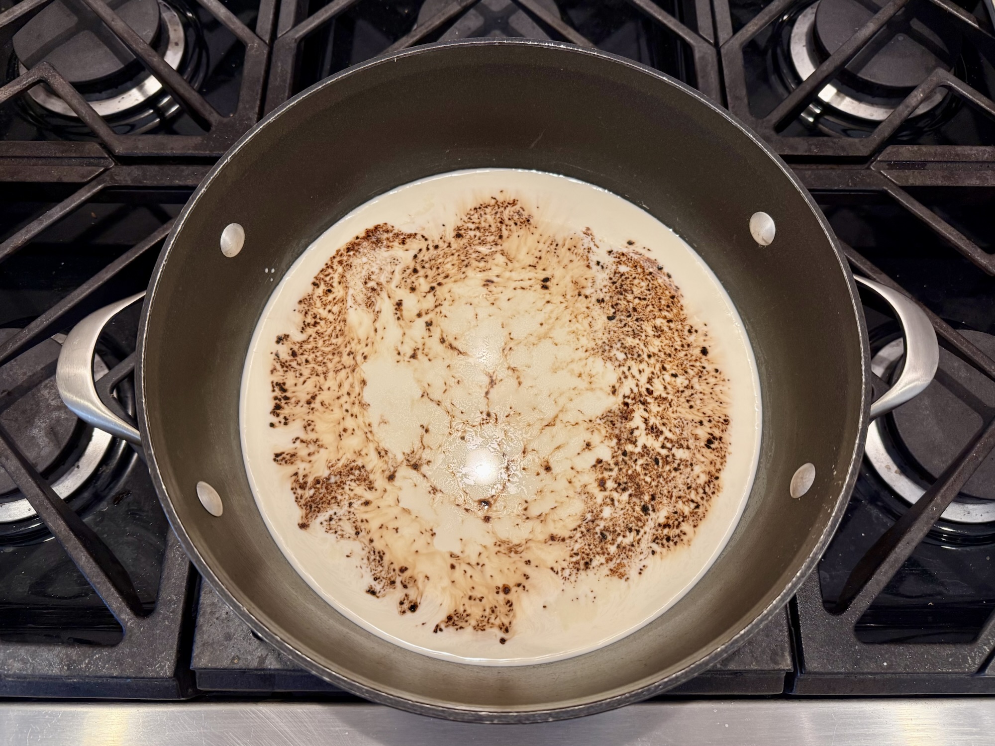 Heat the heavy cream, espresso powder, and salt together in a medium saucepan over medium heat. As soon as it begins to simmer, remove from heat. Stir in the vanilla extract.