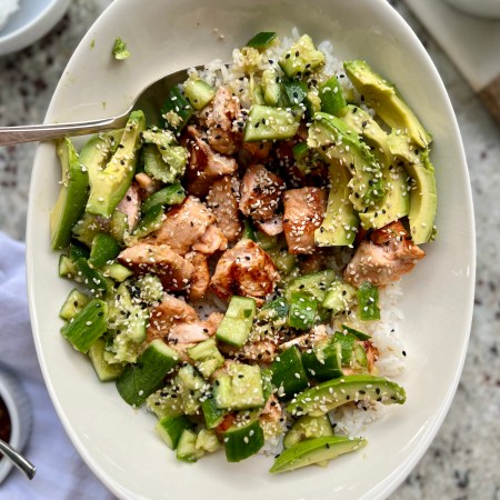 Easy Salmon Bowls with Smashed Cucumber Salad